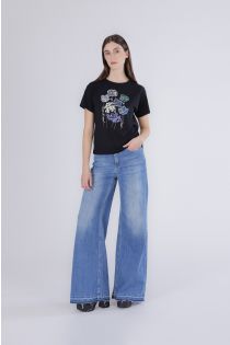 camiseta con flores de lentejuelas black
