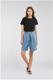 Camiseta de cuello redondo de punto de algodón con logotipo bordado