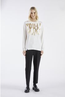 Camiseta en tejido de punto de viscosa, adornada con lámina oro y pequeñas tachuelas doradas
