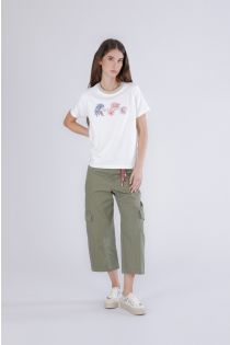 camiseta con logo y canalé de lurex en el escote off white