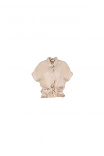 camiseta de lino anudada en la cintura