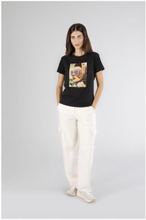 Camiseta regular fit de manga corta confeccionada en punto de algodón elástico. el estampado reproduce el rostro de una mujer con gafas de sol.