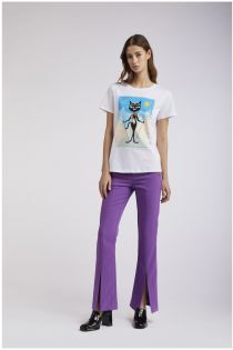 Camiseta de manga corta en punto 100% algodón con el simpático cat noir esquiador
