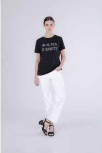 camiseta de manga corta con la inscripción "sol, mar y salpicaduras" black