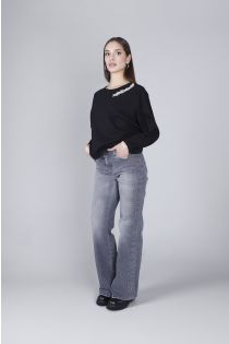 Camiseta de cuello barco y mangas largas de murciélago, confeccionada en jersey de algodón. Aplique de pedrería en la parte delantera para un toque de brillo. Corte regular y estilo casual. La modelo mide 172 cm y lleva la talla S.