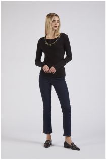 Camiseta con escote redondo y manga larga confeccionada en un cálido y cómodo tejido de punto de viscosa. una preciosa cadena joya adorna el escote a modo de collar.