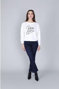 Camiseta de manga larga con diseño de murciélago, confeccionada en algodón elástico con bordado "Le Club Noir" de pedrería en la parte delantera. Estilo casual y corte regular, ideal para looks modernos. La modelo mide 172 cm y lleva la talla S.