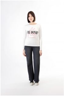 Camiseta de manga larga confeccionada en algodón elástico con estampado "be noir be free" en la parte delantera.