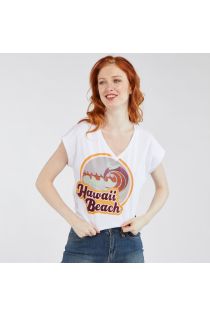El mar, el surf y el deseo de verano están encerrados en esta camiseta de punto de algodón elástico con una mezcla de técnicas de estampado aplicadas en la parte delantera.