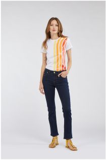 Camiseta en punto de algodón con un gran arco iris estampado con efecto glitter que decora la parte delantera, convirtiéndose en la estrella indiscutible.