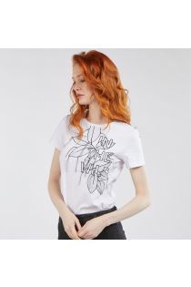 Camiseta de punto de algodón con un importante ramaje de hojas bordadas que decora la parte superior delantera