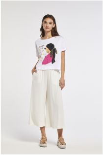 Camiseta de punto de algodón con estampado multitécnico que reproduce una mujer de espaldas
