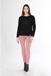 Camiseta de punto de algodón elástico con bordado de cuentas que reproduce el texto París