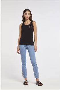 camiseta de punto de algodón elástico con logotipo black