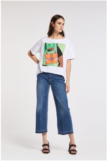 Camiseta en punto de algodón con estampado por delante que reproduce un bolso joya