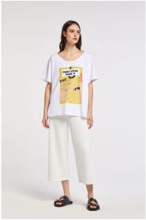 camiseta en punto de algodón con estampado por delante que reproduce una manicura white