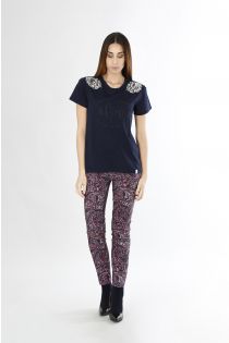 Camiseta de punto de algodón con bordado de lentejuelas en los hombros y logotipo en la parte delantera.