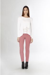 Camiseta en punto de viscosa con estampado laminado floral en la parte inferior