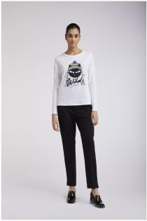 Camiseta de manga larga en punto de algodón 100% que reproduce el simpático cat noir en versión peruana.
