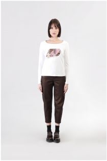 Camiseta de manga larga confeccionada en algodón elástico con estampado multitécnico que reproduce un bolso de mujer.