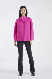 Capa de tejido técnico acoplado con interior de color en contraste y remates de corte vivo