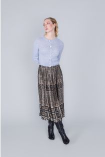 Cárdigan de mezcla de mohair con lentejuelas y botones joya. Perfecto para un look informal pero sofisticado. Cálido y refinado para cualquier ocasión. Corte regular. La modelo mide 174 cm y lleva una talla S.