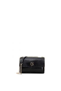 Cartera con solapa realizada en piel sintética con estampado de cocodrilo y adornada con el accesorio CafèNoir por delante. Cadena deslizante para regular la longitud, portabilidad en los hombros.