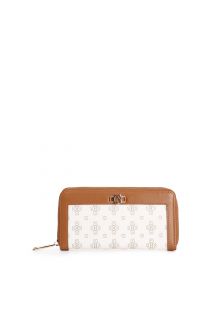 cartera con cremallera redonda en saffiano con estampado de monogramas y accesorio metalvetti tan