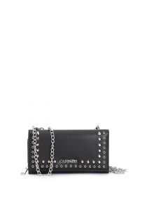 cartera de doble compartimento con aplicación de remaches y bandolera de cadena black