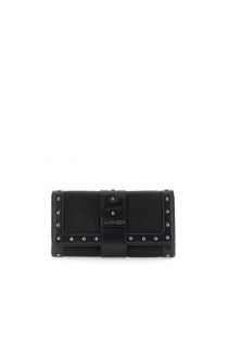 cartera efecto piel con ribete y remaches black