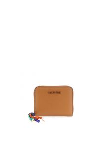 Cartera con cremallera envolvente efecto saffiano, logo a juego y charms multicolores.