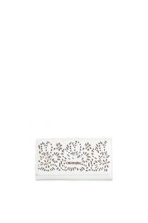 cartera grande con solapa, perforación láser y aplicación de remaches, letras white