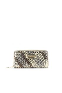 cartera redonda con cremallera trenzada metálica multicolor bronze/platinum