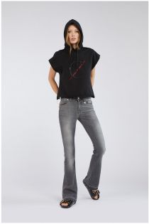 Una prenda bonita y muy atractiva, este chaleco corto de tejido de felpa con capucha y logotipo bordado en la parte delantera. Los dobladillos están sin rematar para dar un efecto deportivo muy de moda