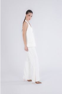 Chaleco cadí para mujer con cuello halter elegante y femenino. diseño refinado con espalda abierta perfecto para looks formales o de noche. ideal para combinar con pantalones de vestir. la modelo mide 175 cm y lleva la talla s. corte: regular.