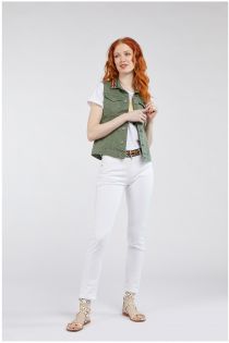 Chaleco de tela bull denim con cinta étnica aplicada en el cuello