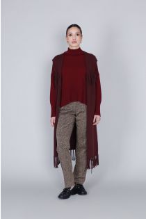 Chaleco oversize con estampado de flecos, confeccionado en suave hilo de mezcla de viscosa. Ideal para un look casual y relajado. Perfecto para combinar con suéteres y vestidos y lograr un estilo versátil. La modelo mide 174 cm y lleva una talla pequeña.
