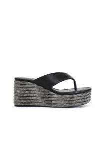 Chanclas de napa con cuña y bandas de pedrería. la cómoda plantilla acolchada de piel auténtica hace que el zapato resulte confortable incluso tras varias horas de uso. el tacón mide 70 mm de alto y la plataforma 35 mm.