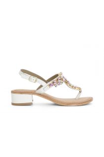Chanclas con accesorio joya de piel tacón h. 35 mm.