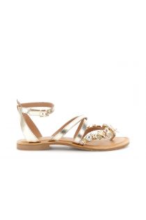 Sandalias planas tipo chancla con tira ajustable en el tobillo y tira cruzada frontal adornada con apliques decorativos. elaboradas en piel cuentan con una cómoda plantilla de piel y una suela flexible de 1.4 cm. el calzado ideal para un look veraniego refinado y práctico.