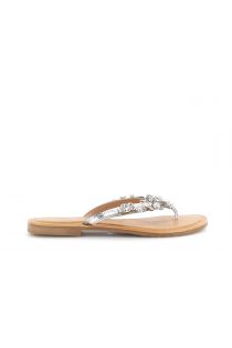 Chanclas planas con tira de piel adornada con apliques de pedrería. plantilla de piel anatómica para mayor comodidad diaria y suela baja y flexible de 1.4 cm. un modelo elegante y práctico ideal para completar looks de verano informales o más sofisticados.