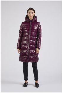 Plumífero de aspecto atrevido con una línea actual. el cinturón lo hace femenino. el mismo material con dos acabados diferentes brillante y mate.