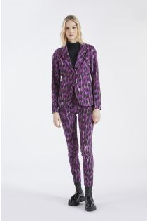 Chaqueta estampada de abotonadura simple confeccionada en tejido de algodón elástico. Disponible en tres variantes de estampados exclusivos