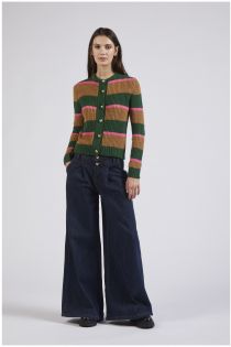 Cárdigan manga larga confeccionado en hilo de lana viscosa disponible en una variedad de colores a rayas y 3 colores lisos.