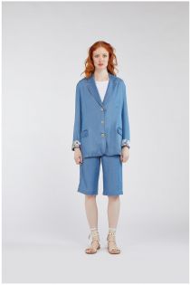 Chaqueta sin forro en tencel de efecto vaquero realzada por contrastes de tejido estampado.