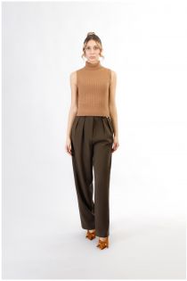 Jersey bajo chaqueta sin mangas con cuello alto con canalé y trenza confeccionado en hilo de mezcla de viscosa. perfecto para usar con cualquier combinación.