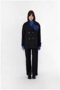 Chaquetón cruzado con cuello ancho y botones dorados. una prenda de fondo de armario imprescindible y versátil que combina con todos los estilos.