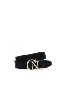Cinturón de piel serraje con hebilla de strass.