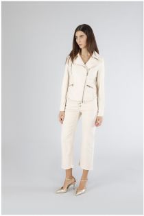 Cazadora biker confeccionada en polipiel con efecto envejecido. corte recto y cremallera transversal. bolsillos con cremallera. artículo versátil para agregar a tu guardarropa.