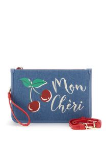clutch de lona y efecto napa con estampado y bordado denim